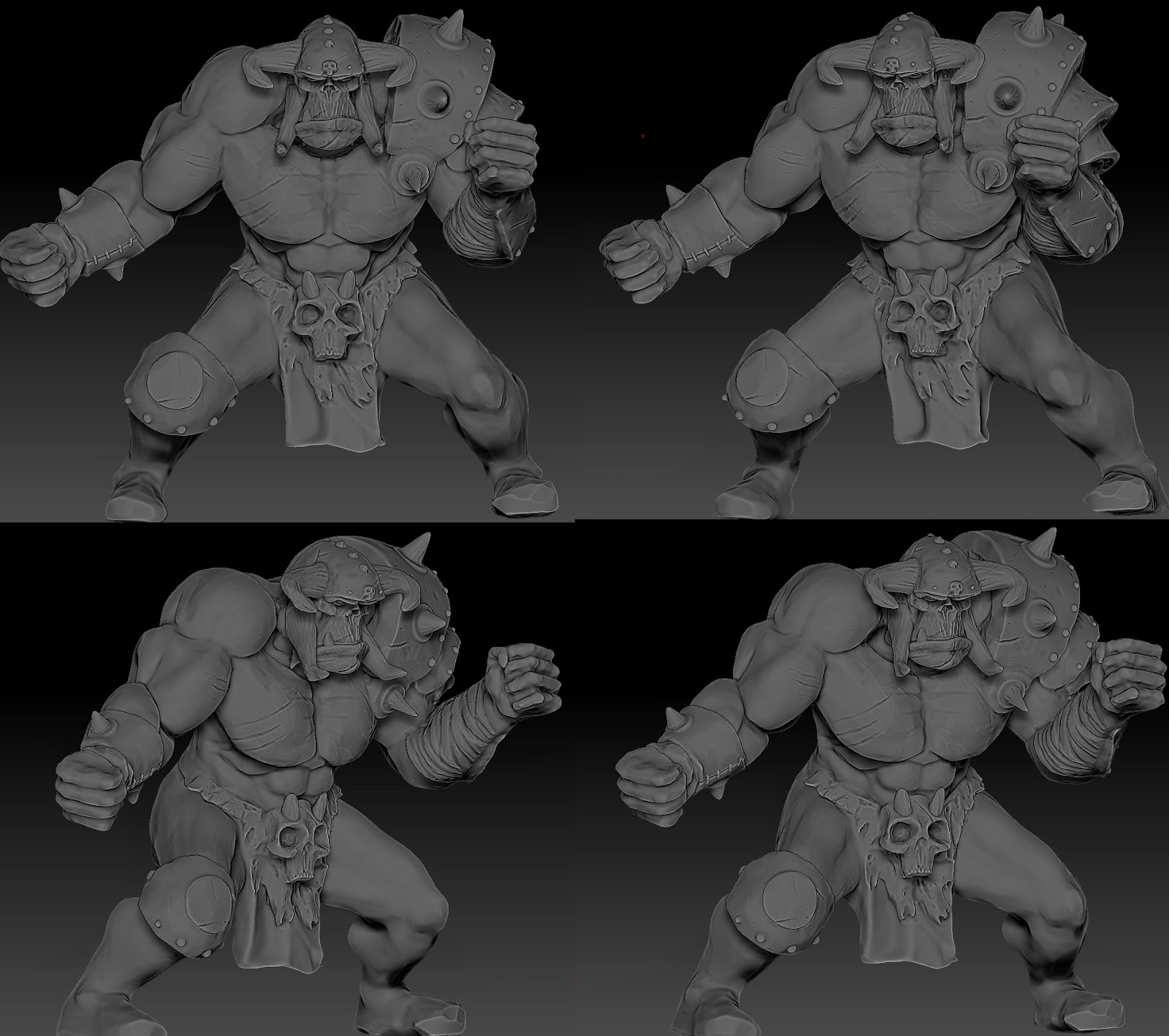1. La pose está bien pero al poner el brazo de su izquierda tan adelante (90º respecto al cuerpo) me recuerda a las minis de orkos de la caja 3ªed de 40k. Para evitar un poco esto cambiaria un poco la pose de este.