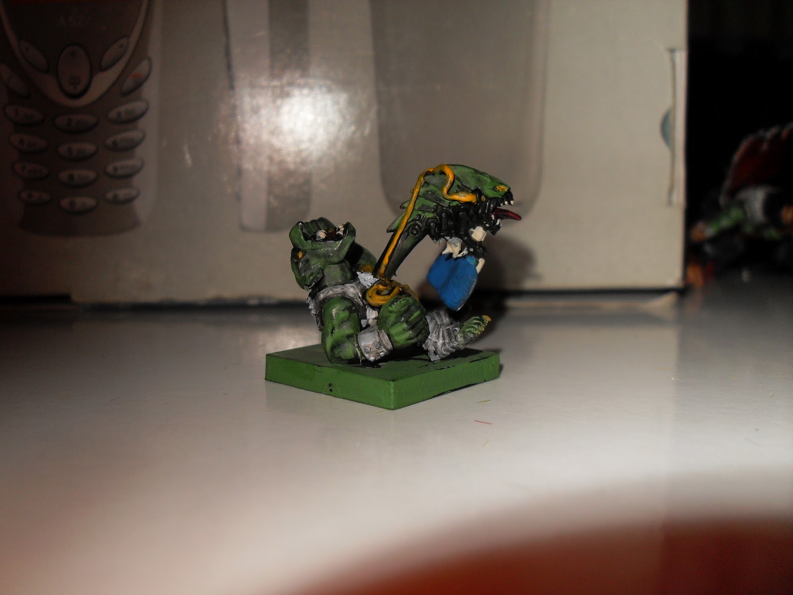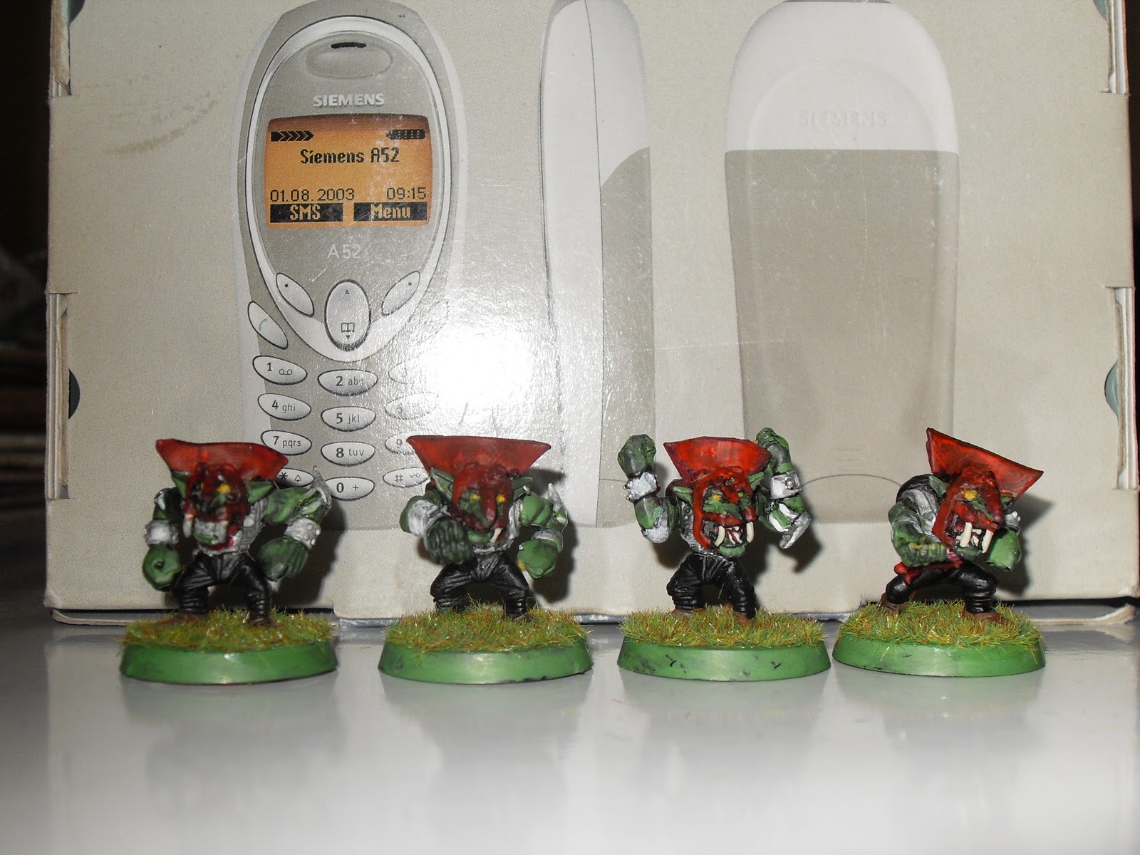 Hola a todos. La cuestion es que queria hacerme un equipo de goblins, pero me frustraba la idea de que fueran a morir constantemente asi que decidi conversionarlos como criaturas no-muertas de pelis o comics de terror. Para asi tener la conviccion mental de que no pueden morir, y funciono acabe con menos bajas en la master que cuando llevaba lagartos XD. Todavia estan a medio pintar.
